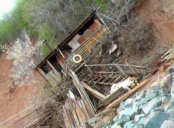 Внизу мы увидели, какое то подобие жилища, на что мой юный мозг вскрикнул «отшельники!» Оговорка: там 3 ступени обрыва, хибарка находится на 2м, то есть после нее еще столько же метров до льда (на фото не видно в полной мере высоту)