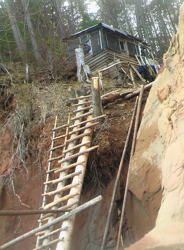 Ну как можно было отказаться от настоящей хижины отшельника? Велики на спину и пошли искать спуск!