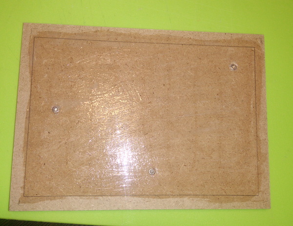 По рамке обводим на крышке контур, чтоб понять куда клеить фон.