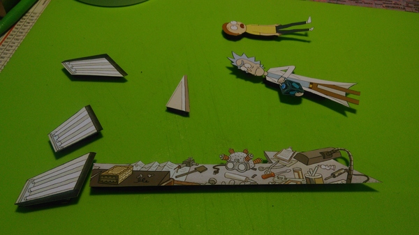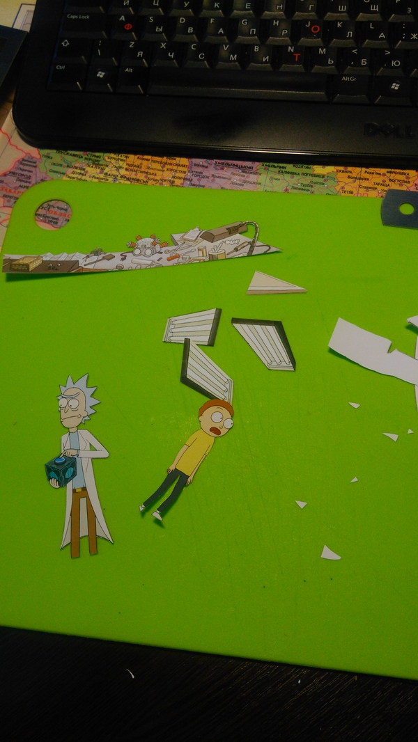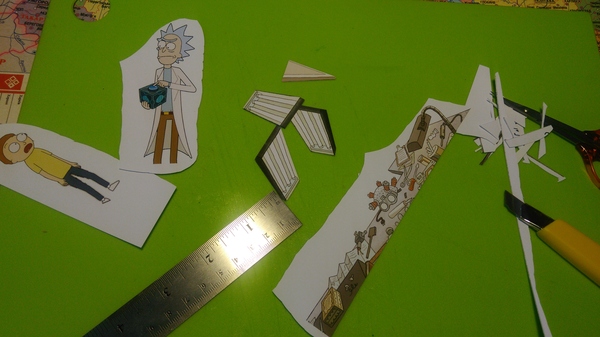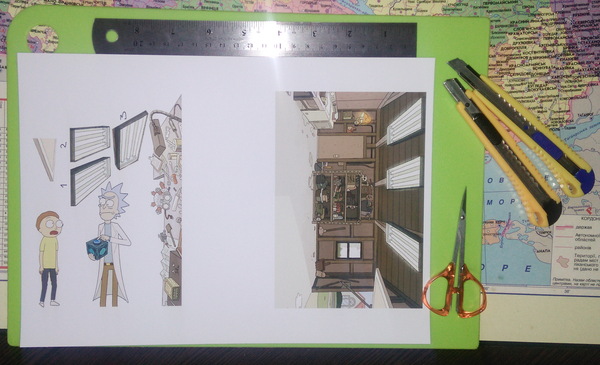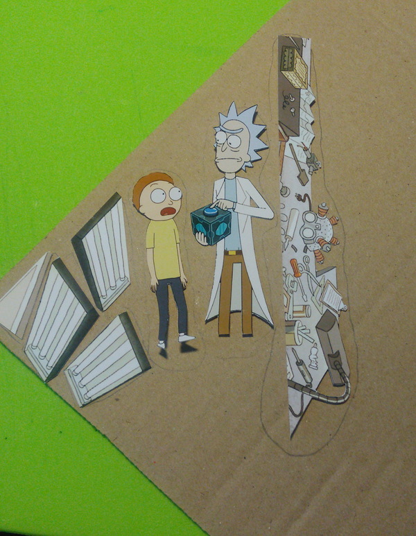 Радуемся лампам, потому что они режутся под линейку. Для Рика, Морти и стола запасаемся терпением или ищем самые прямые руки во всей квартире и просим помочь.