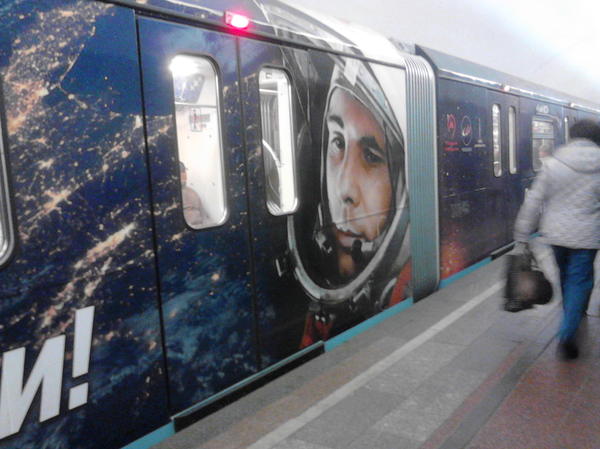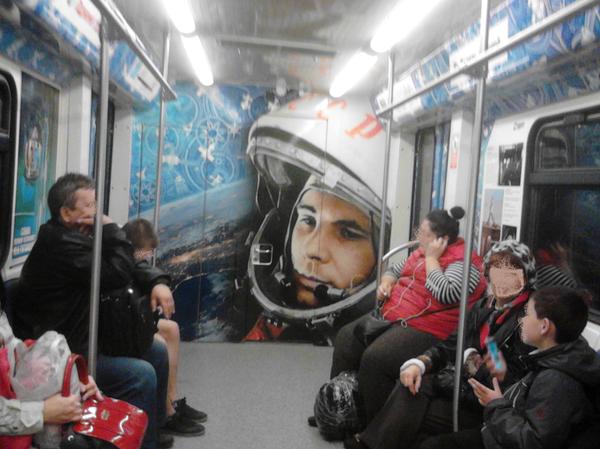 Привет пикабу! Ехала я как-то домой по метро, и встретила прекрасное зрелище: один из юбилейных вагонов, а точнее на 12 апреля. Ну как таким не поделиться!? (да, я знаю что прослоупочила, фото были сделаны 13 апреля, просто руки не доходили выложить)
