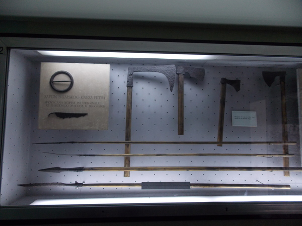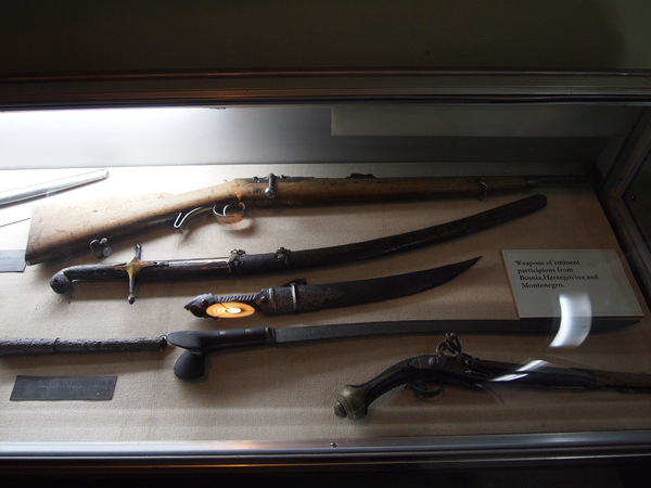 Сам музей расположен в отдельном здании наверху. Здание небольшое, но мне очень понравилась внутренняя планировка и логика музея: вся площадь этажа разделена на залы, которые расположены "змейкой" один за другим. В них рассказана краткая история оружия и войн от древности до современности, в хронологическом порядке. Таким образом, гуляя по музею, гарантировано осмотришь всё, нигде не заблудишься и не потеряешь спутников (Люди, ау! Где вы?!). В залах выставлены образцы оружия, наград, знамен, военной формы разных народов, кратко и схематично рассказывается о войнах, проходивших на территории Сербии и сопредельных территориях.