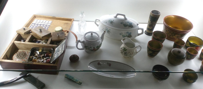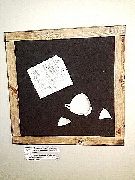 На следующем фото также современная инсталляция из фарфора: похоронка, пришедшая с фронта и разбитая кружка, выпавшая из рук несчастной матери.