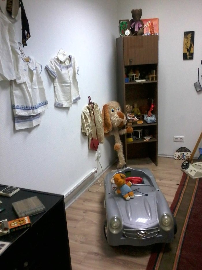 Зайдя внутрь, я буквально окунулась в свое детство, и как буд-то перенеслась в родительскую квартиру! Такой же ковер, такой же велосипед, стол, даже печатная машинка похожая была у нас в семье!