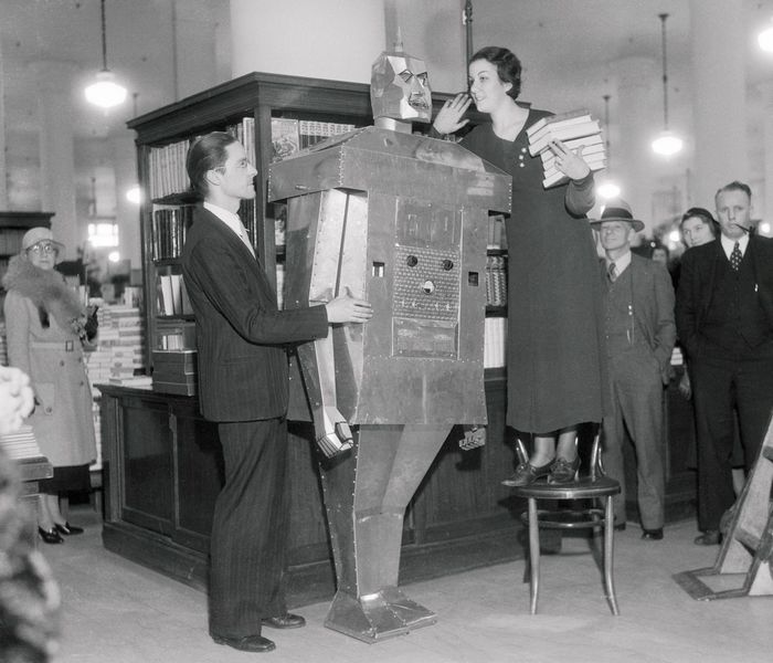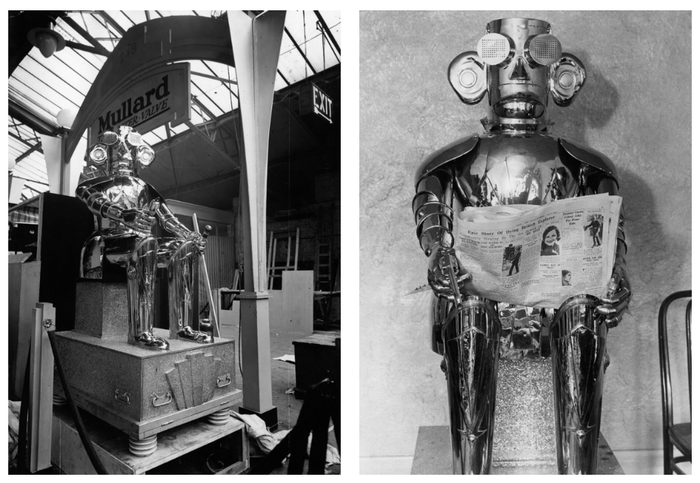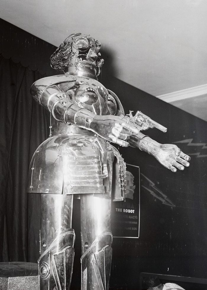 Недавно наткнулся на подборку винтажных роботов от Mashable c 1925 по 1981 год. Громоздкие роботы, они не умели передвигаться, но часто использовались для привлечения клиентов в универмаги.