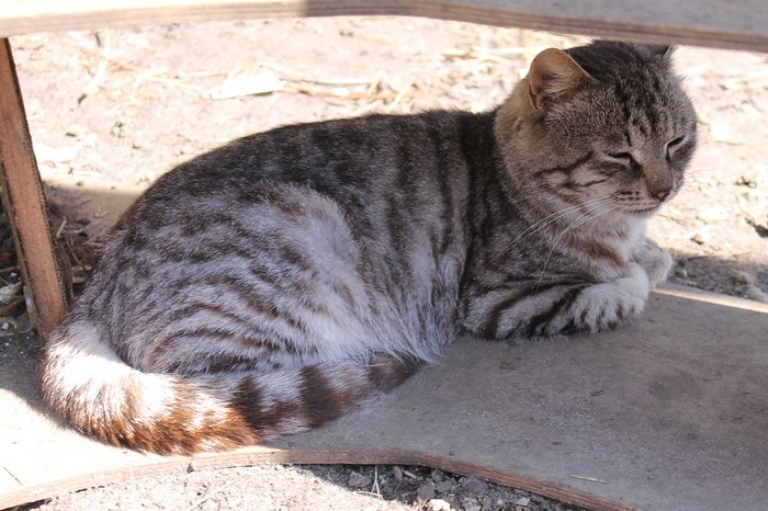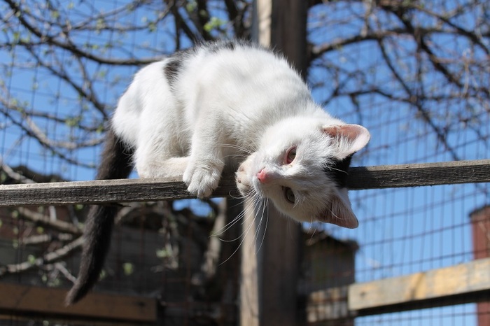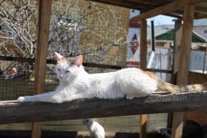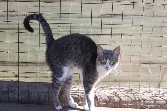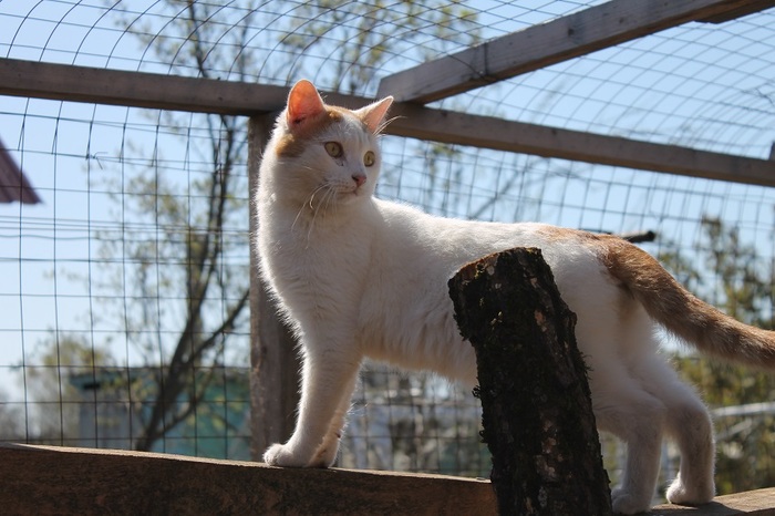 Вчера привез с передержки кошечку которую поместили туда 10 апреля. Теперь она в общей стае. Приняли её хорошо! Думаю над именем для неё.