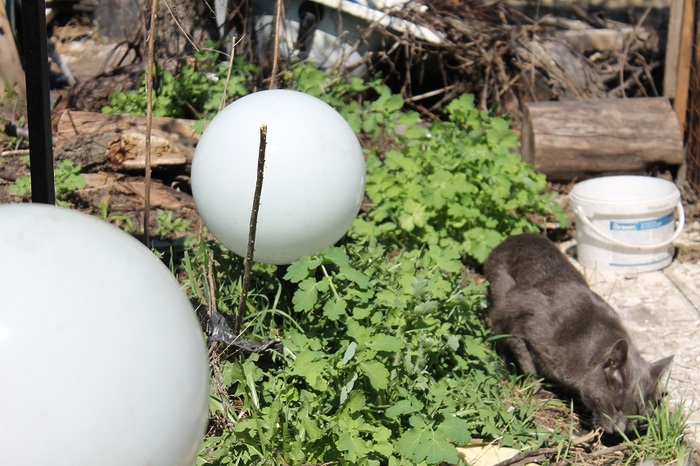 С соседкой по забору так и не удается договориться. Позавчера плевалась уже в меня)))