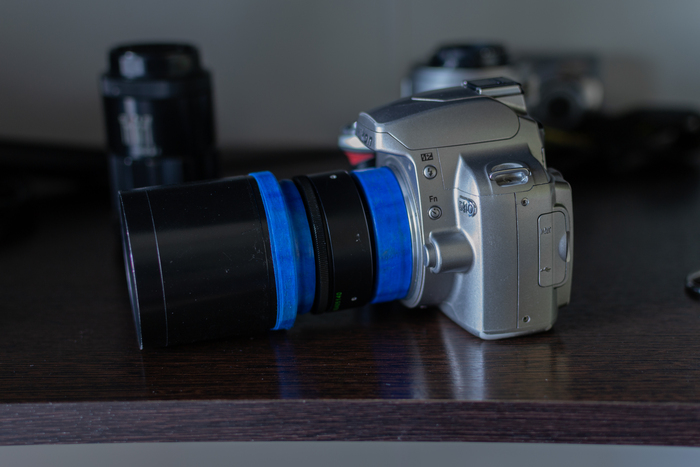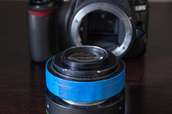 Ну а далее просто кладем переходник на кольцо фокусировки и обматываем изолентой