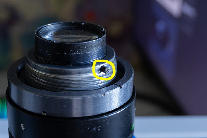Следом откручиваем этот болтик - он мешает фокусировать объектив на бесконечность