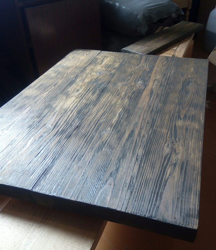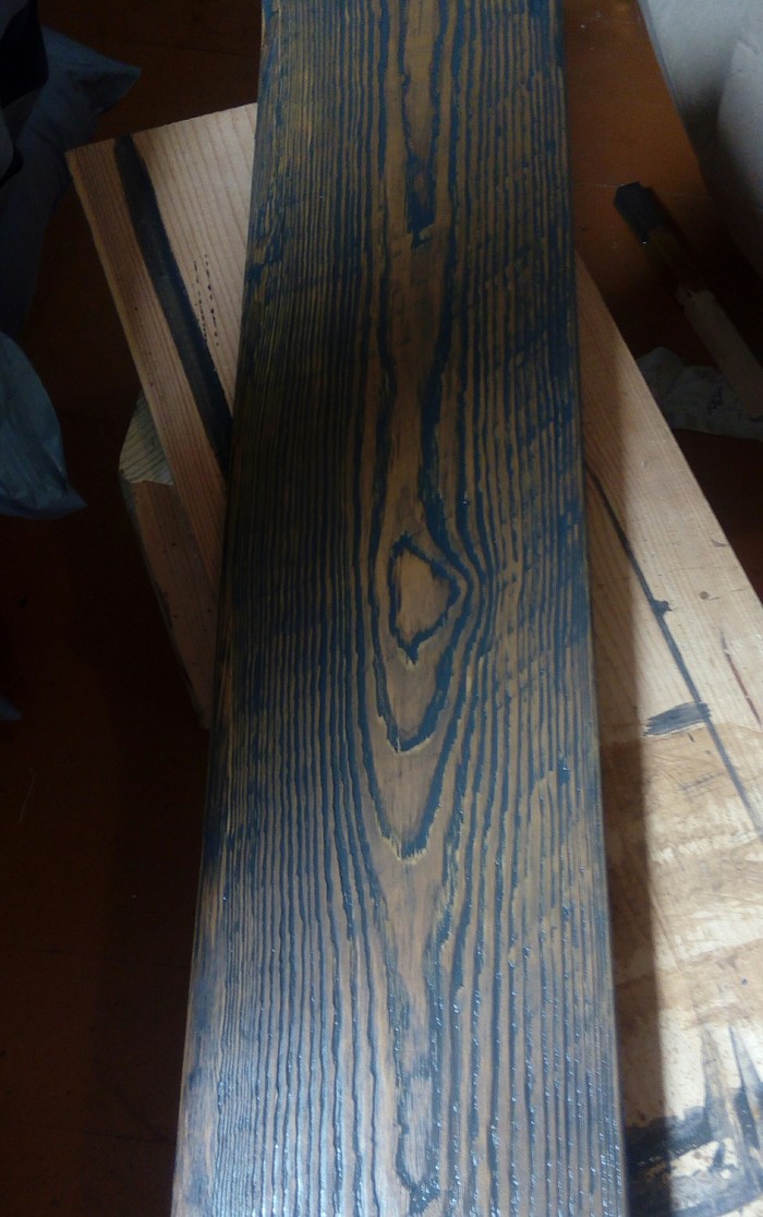Крышки брашировал и тонировал акриловой пропиткой. Первый слой - дуб, цвет получился так себе.