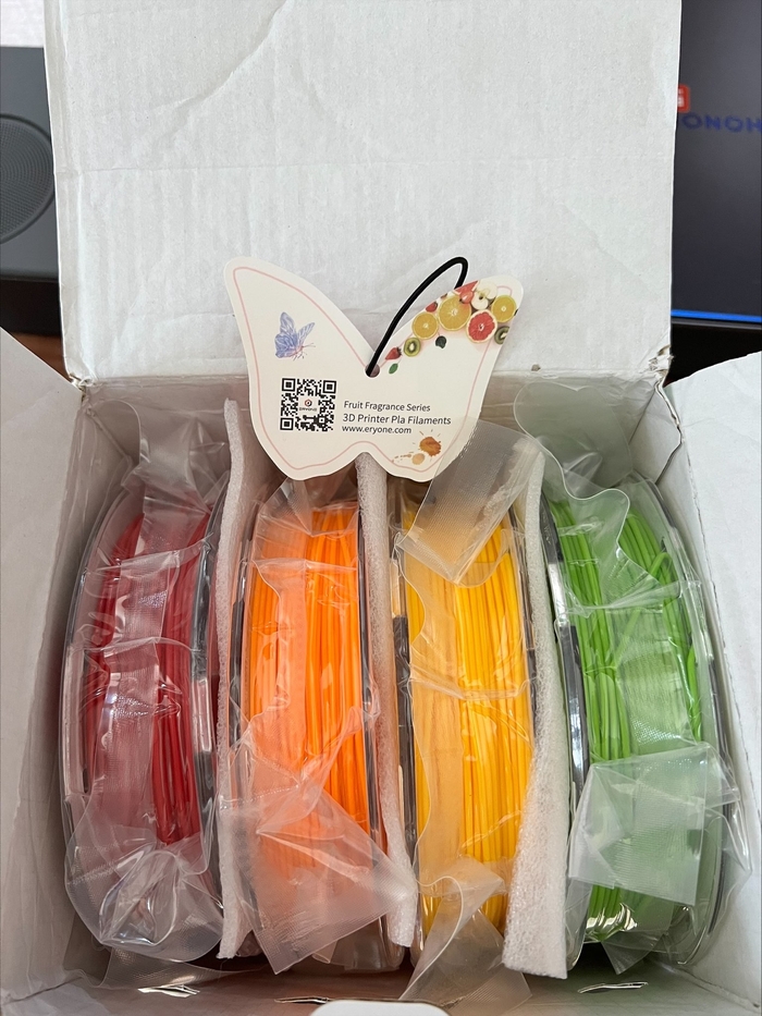 Резюмирую: В целом пластик интересный, по внешнему виду это PLA+ но с изюминкой в виде ароматного запаха. На попробовать рекомендую именно вариант с набором 4 ароматов : апельсин, манго, клубника и яблоко, ценник будет как у катушки в 1кг.
