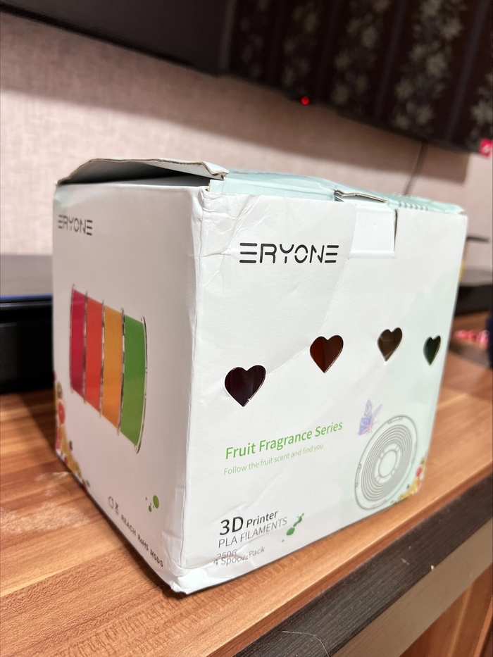 Впрочем, пластик с ароматом я брал что бы удивить свою жену, так как просто красивые вещи уже приелись. В магазине ERYONE можно этот пластик купить в двух вариантах – стандартной 1кг катушке определённого аромата, либо (промо) набором из 4 катушек по 250гр. Так как я хотел ознакомится с данным пластиком, то взял второй вариант.