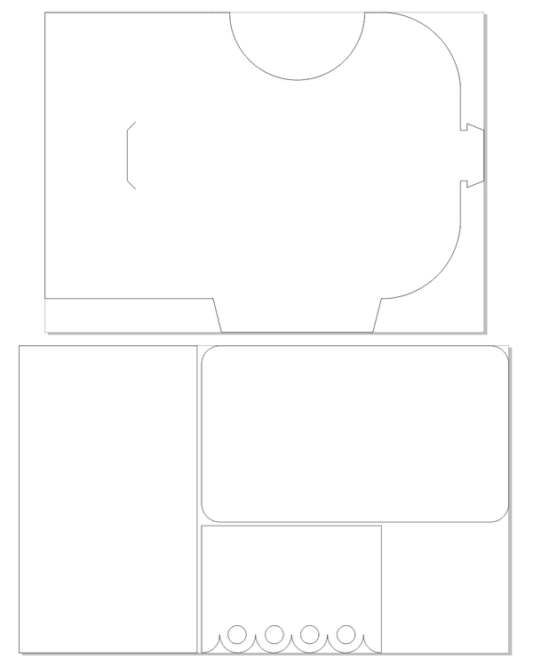 Вроде, ок. Отдаём в типографию на лазерную резку. Но предварительно надо выбрать бумагу. Плотную. Очень. Под конверт 240 г/м2, на подложки и декор - 200 г/м2. Чего получаем?