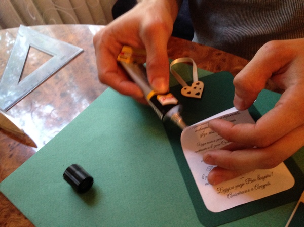 Приклеиваем текст, который я сам напечатал на своём лазерном чб принтере.