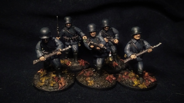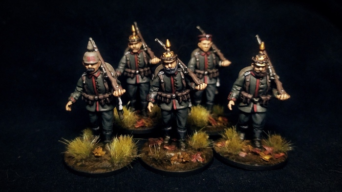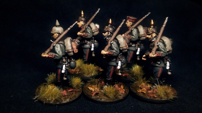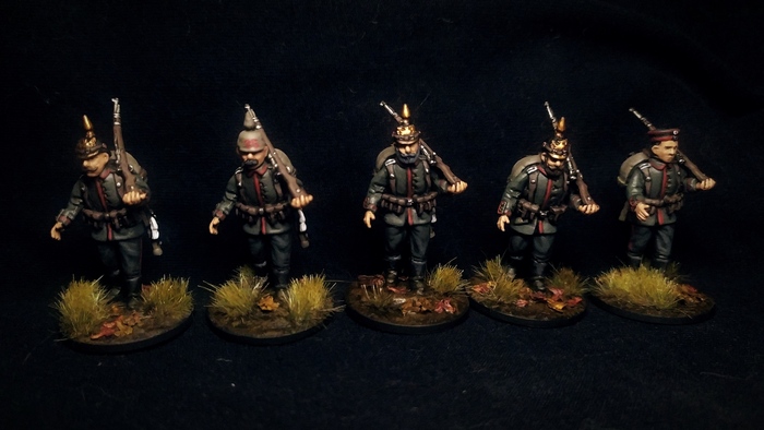 Начнём с пополнения моей армии немцев на 1914 год. Уже давно собираю 35-й Принца Пруссии Генриха. На фото солдаты на марше.