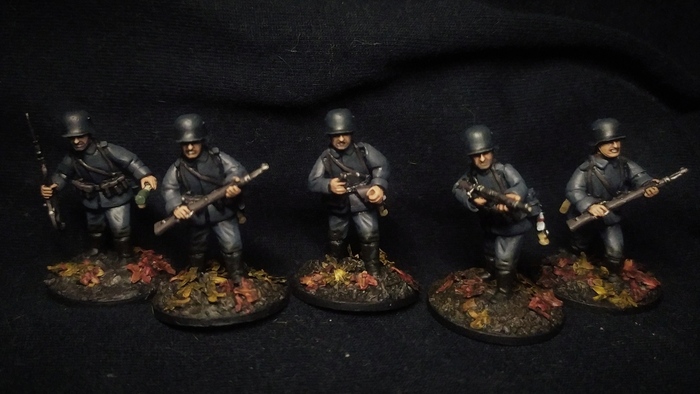 Ещё хочу показать немцев, но уже на поздние годы войны. По центру стоит офицер, это модель конверсия, в литьë я эту модель не отправлял, поэтому стоит задуматься над мастер-моделью немецкого офицера. Если руки дойдут, то обязательно покажу процесс лепки.