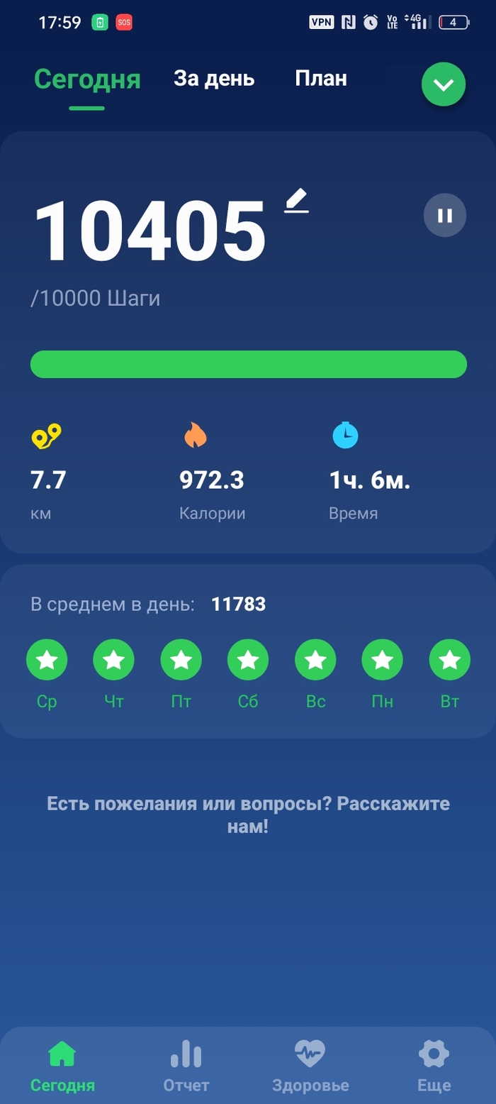 Воскресный рекорд! Для меня, всего месяц назад нашагивавшего на работе всего 3-4 тыс шагов, это что-то из разряда вон! Ну и, сегодняшние показатели. Как же красиво смотрятся эти семь звёздочек )))