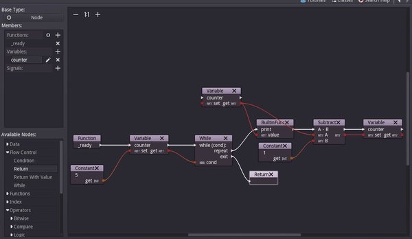 Руководитель разработки бесплатного движка Godot Engine Хуан Линьетски (Juan Linietsky) поделился в своём твиттере очередными новшествами, которые ждут разработчиков уже совсем скоро. На этот раз в обновлениях появится визуальное редактирование скриптов, похожее на Blueprint из Unreal Engine.