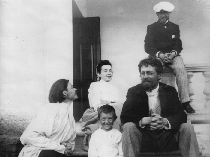 Слева направо: Максим Горький, Софья Чехова с сыном, Антон Чехов. 1900. Дом-музей А.П. Чехова, Ялта, Республика Крым