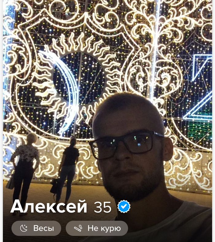 4. Закрытое лицо - это странно. Особенно если закрыто на всех фото профиля. Выбор предполагается именно по фото, буквально по лицу, поэтому если человек на всех фото в очках, то я ожидаю, что он их никогда и в жизни не снимет, потому что тогда меня ждут неожиданности) Естественно речь о солнцезащитных очках. Также смайлики вместо лица, фото со спины и прочие попытки себя анонимизировать. Если я не вижу лицо, то остальное мне точно не будет интересно.