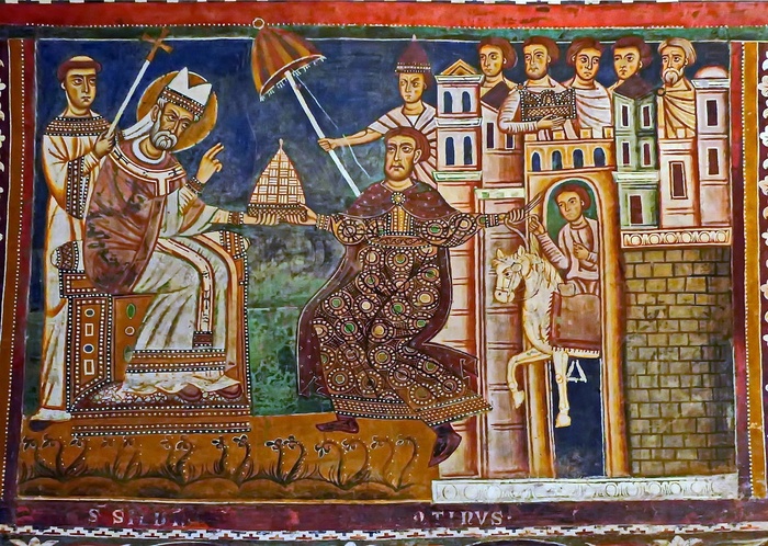 фреска из часовни св. Сильвестра: послы Константина отправляются к папе Сильвестру