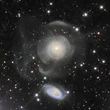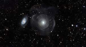 Множество светящихся оболочек раскрывают неожиданно сложную структуру этой галактики. NGC 474 находится на расстоянии 100 миллионов световых лет от Земли и имеет диаметр около 250 000 световых лет. Для сравнения, диаметр спиральной галактики Млечный Путь, в которой расположены Солнечная система и Земля, составляет около 100 тысяч световых лет. Как видно из снимка, NGC 474 имеет несколько «оболочек», точные причины появления которых до сих пор неизвестны. Предположительно, они появились в результате поглощения одной или нескольких более мелких галактик гигантской галактикой.
