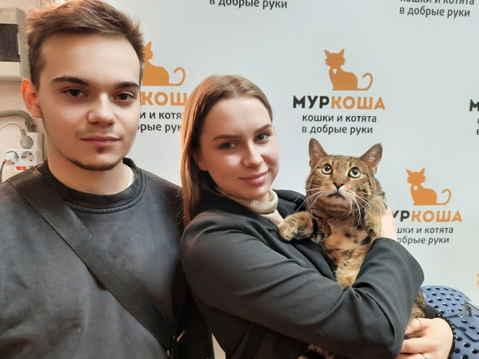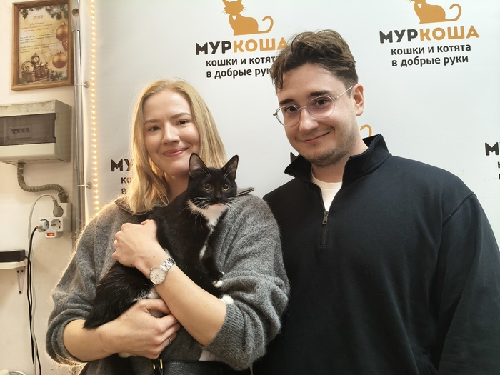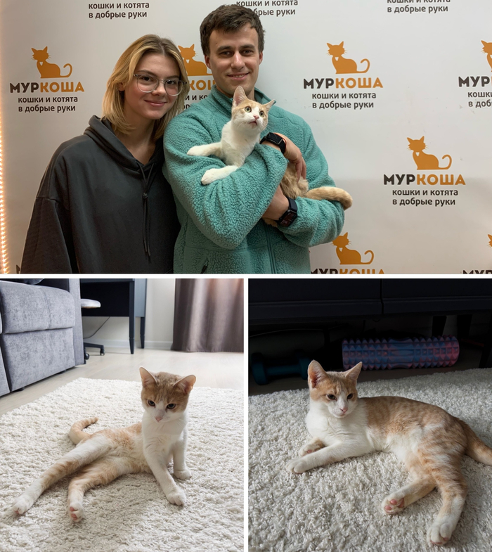 5-месячному котенку Салютику случилось встретить своих хозяев, в обнимку с которыми он уехал в яркую и интересную совместную жизнь, чтобы расти всем на радость и бысть самым счастливым!