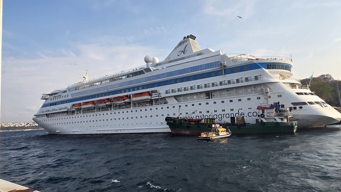У другого берега около дворца Топкапы пришвартована многострадальная Astoria Grande, которую так и не впустили в порт в итоге (это я уже потом из новостей узнала)