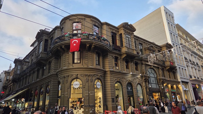 Далее идем вниз по улице Истикляль. Как я уже писала, это некоторая смесь Арбата и Тверской - самые дорогие дома, самые дорогие бренды и так далее. Впрочем, где-то справа в середине есть супермаркет (т.е. бесплатный туалет и фудкорт если кому вдруг надо )
