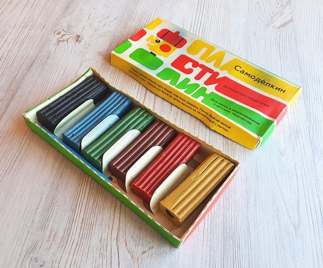 Совсем иное дело обстояло с другим видом пластилина — тем, который затвердевал после термической обработки. В 70-е годы ВНИИ «Химпроект» разработал пластилин, который отличался довольно яркой окраской за счет отсутствия в составе петролатума и парафина, а заодно и мог затвердевать, если изделие окунали на несколько минут в горячую воду или помещали в сушильный шкаф.