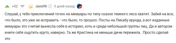 Помня ту свою психологию и мысли, вероятно у меня бы всё получилось, тусила бы сама с собой - успокаивала и всё объясняла. Отвела бы саму себя на тусовку к Кали как минимум. Ещё бы хотела спасти Рома - но до сих пор не знаю как. Там наверное не помогут ни психолог, ни деньги, там нужен психиатр и другое общество.