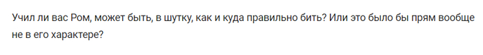 По ходу истории есть ответ. Да учил. Но потом уже выяснилось, что не очень эффективно. Это было из разряда профессионального бокса в большинстве - хотя на улицах, более эффективны - бои без правил. Но добивать лежачего он меня тоже научил, пригодилось на тех же Серёге и Марке.