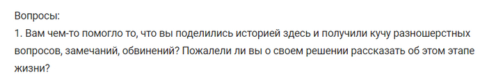 В целом да. Выговорилась. Почти. Чердак тоже почти попустил. Это прям самое ебовое воспоминание, хуже притона. Ещё пытаюсь избавляться от слов - паразитов. Работаю над собой. И справляться с агрессией - это у меня ещё не прошло, я злая. Стараюсь отвечать на все неудобные вопросы за которые хочется собеседнику въебать - например бесконечные вопросы про мамочку. Хочешь быть нормальным членом общества - учись. Я так думаю.