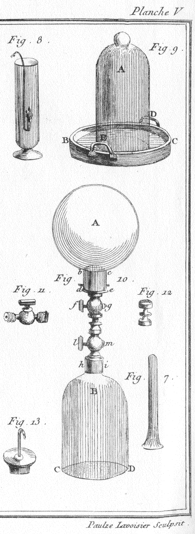 Приборы, изображенные на картине Давида, использовались в другом важном эксперименте – установлении состава воды, который Лавуазье проводил совместно с математиком Пьер-Симоном Лапласом. Давайте рассмотрим их слева направо: