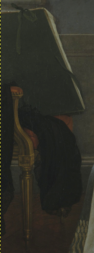 Из изображенных вещей на картине осталось сказать пару слов о невзрачном стуле слева от Марии Анны. Считается, что папка с бумагами на нем – это как раз ее гравюры и другие рисунки для «Элементарного трактата»: