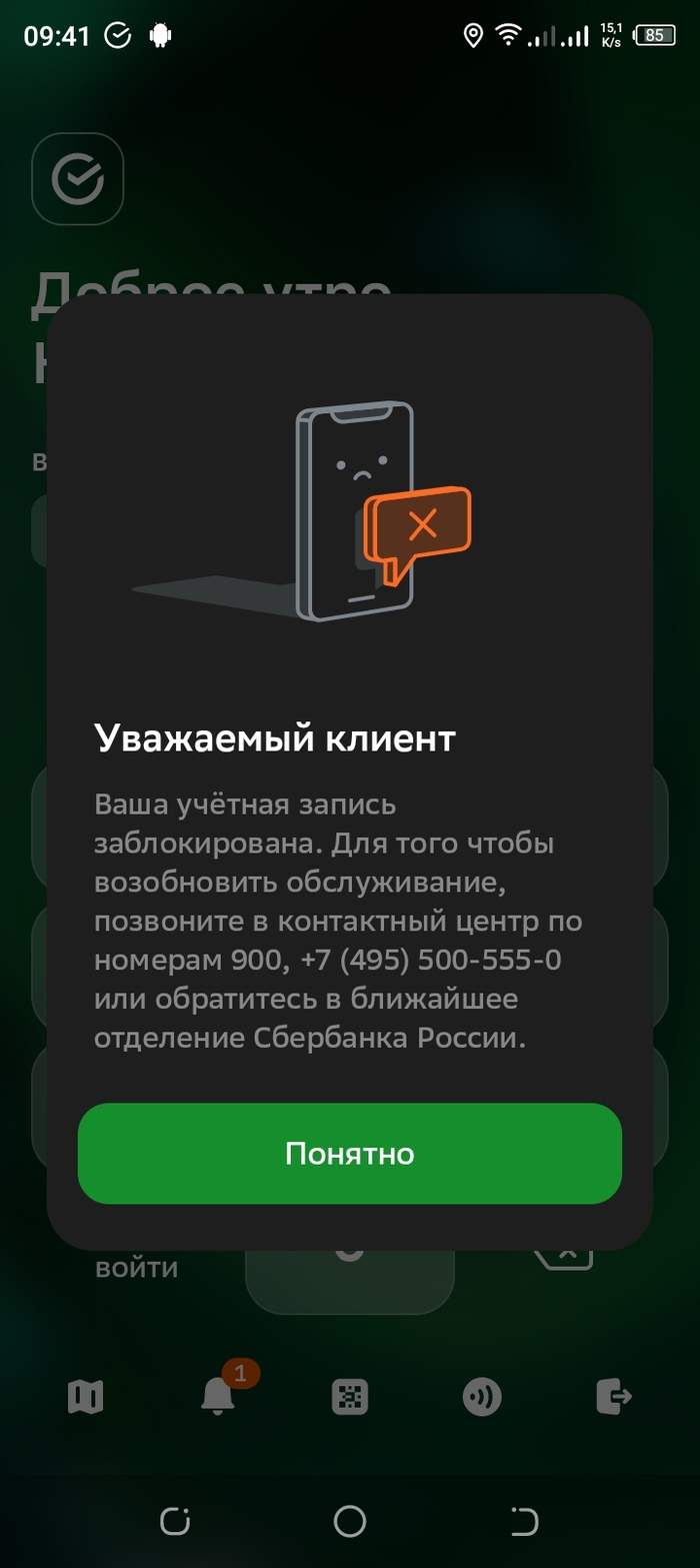27.02.25 около полуночи(здесь и далее время местное, МСК+7) мне пришла СМС о том, что доступ в Сбербанк Онлайн заблокирован в соответствии с договором о банковском обслуживании. В этот момент на вкладах и инвестициях у меня было более 6 миллионов рублей.