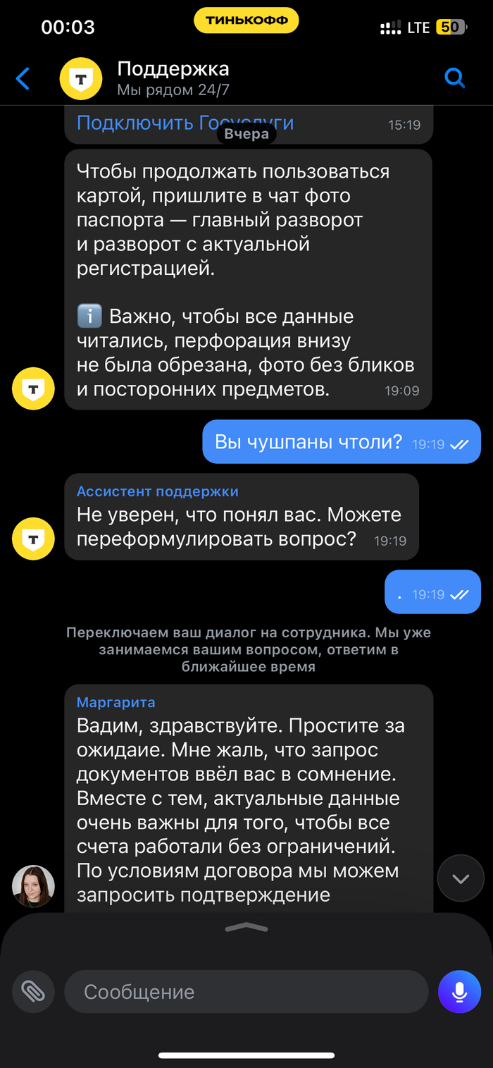 Т-Банк просит документы, которые были переданы курьеру