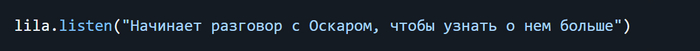 lila получает фразу "Начинает разговор с Оскаром, чтобы узнать о нем больше".