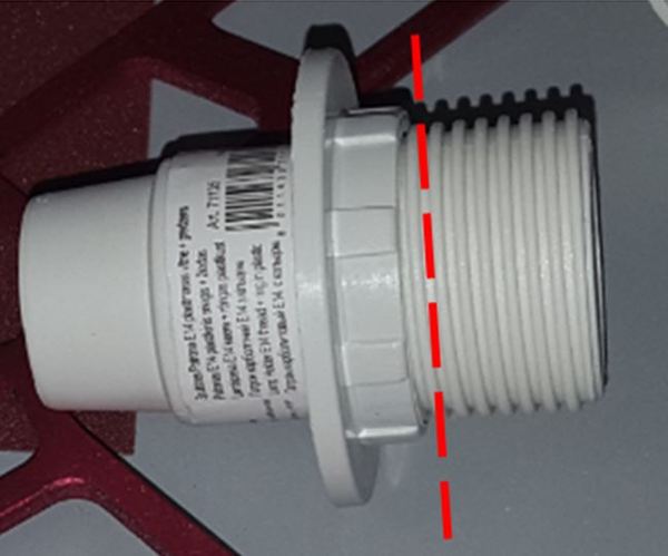 Купленный патрон с внешней резьбой и шайбой для крепления был укорочен лобзиком по пунктирной линии.