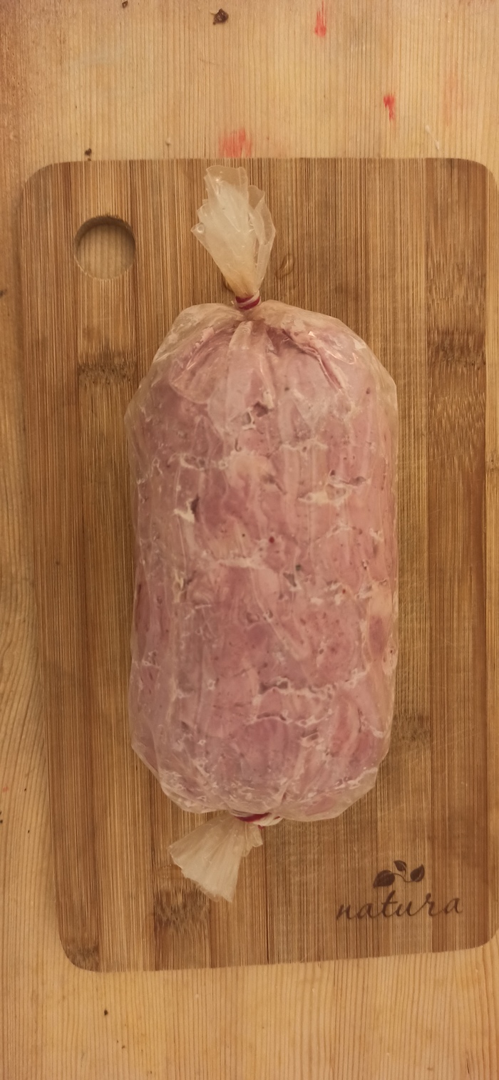 Вот и я решил сделать рубленую ветчину из телятины. Вот так получилось. Набивал ложкой, т.к. времени, все же, не так много. Поэтому набивка не очень плотная. На вкусе не сказалось. Вкусно. Ветчинно )