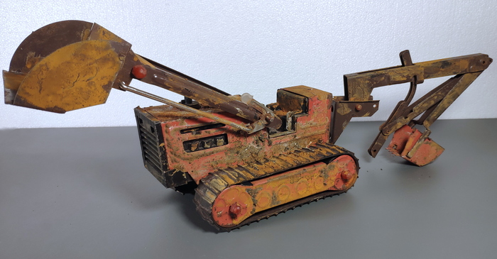 Решил поделиться своей работой.Купил на аукционе советский игрушечный бульдозер киевского завода им.Ватутина 1978 года выпуска,полностью с родными частями ,но такое ощущение,что лежал в болоте.