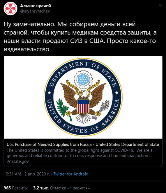 Вся Россия хочет помочь медикам в это тяжёлое время. Хватит нам мешать помогать тем, кто спасает наши жизни!