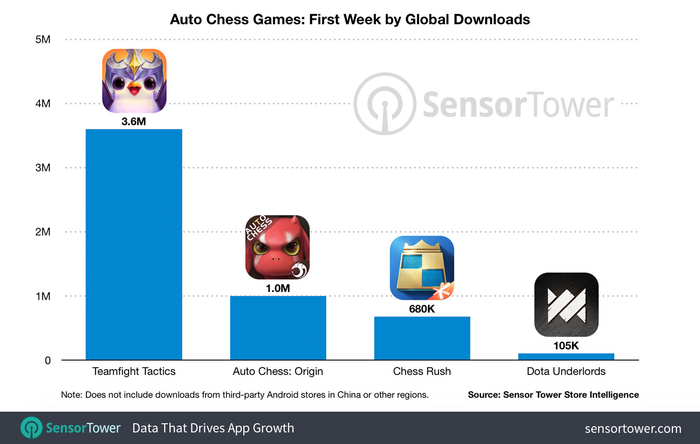 Как сообщает статистическое агенство Sensor Tower, в первую неделю после релиза мобильного автобатлера Teamfight Tactics от Riot Games количество скачиваний превысило отметку в 4.5 млн. Для сравнения Dota Underlords в первую неделю достигла только 105 тыс. скачиваний.