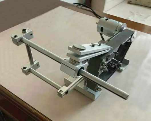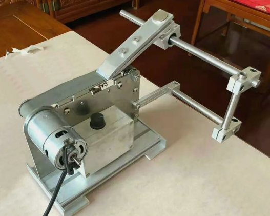 Заточная лента имеет абразивный состав и вращается вокруг валов, кронштейн в свою очередь позволяет точно настроить угол заточки и обеспечивает равномерную доводку по всей длине лезвия.