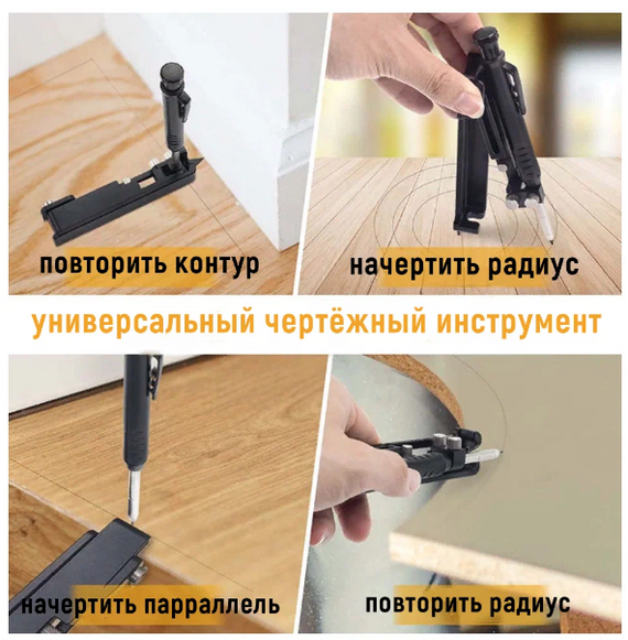 Этот инструмент имеет широкое применение, так как может выполнять более 15 различных видов контурных разметок, что делает его отличным приспособлением для столяров, плиточников и других мастеров, занимающихся строительством или ремонтом.