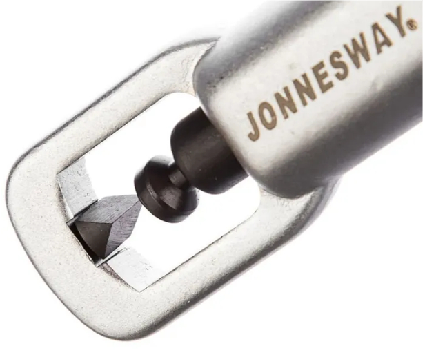 Подвижный упор толкателя обеспечивает удобное и быстрое позиционирование инструмента на крепеже, что позволяет снизить время и усилия, необходимые для раскалывания гаек.