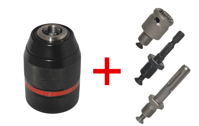 В комплекте с патроном идут адаптеры: шестигранный хвостовик, SDS Plus или квадрат на 1/2 дюйма. Благодаря этим адаптерам патрон становится универсальным инструментом и может использоваться с гайковертом, перфоратором или Impact, что позволяет расширить спектр задач, которые можно решить с его помощью.