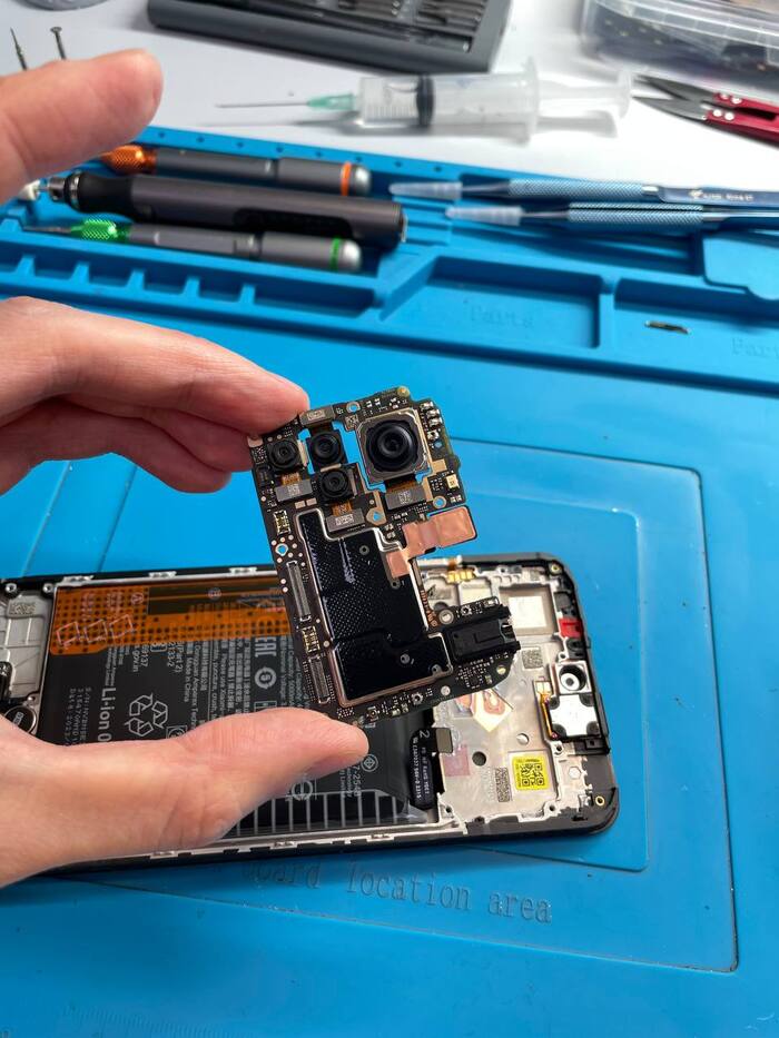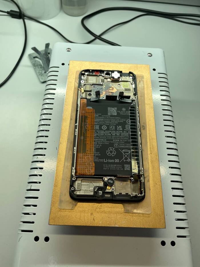 1 этап - разбираем Xiaomi Redmi Note 12 Pro через крышку. Снимаем рамку, материнскую плату и камеру. Все эти действия необходимы, чтобы добраться до дисплея и не перегревать лишний раз компоненты.