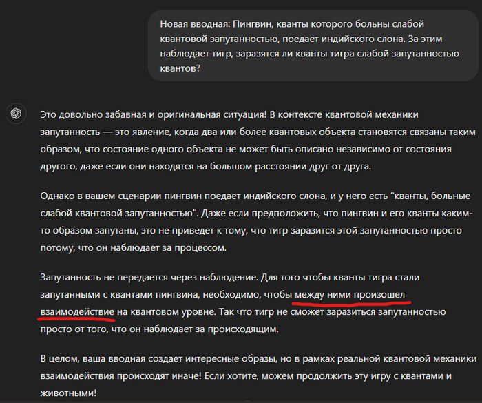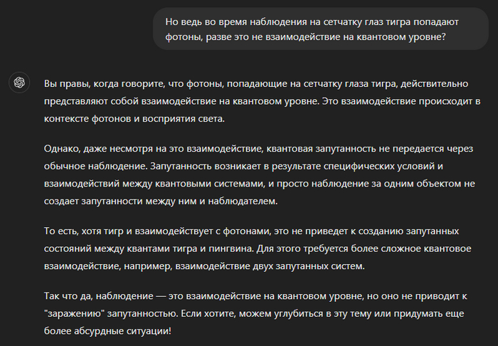 Я ему слово - он мне-десять. Однако, как легко связываются пингвины и кванты...