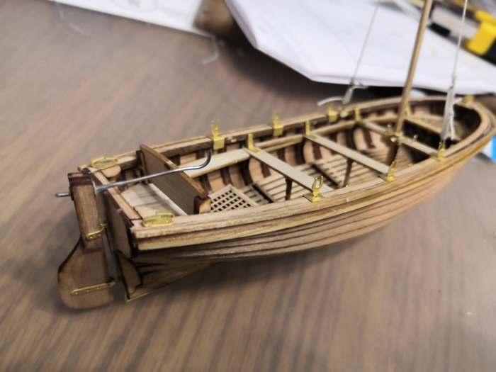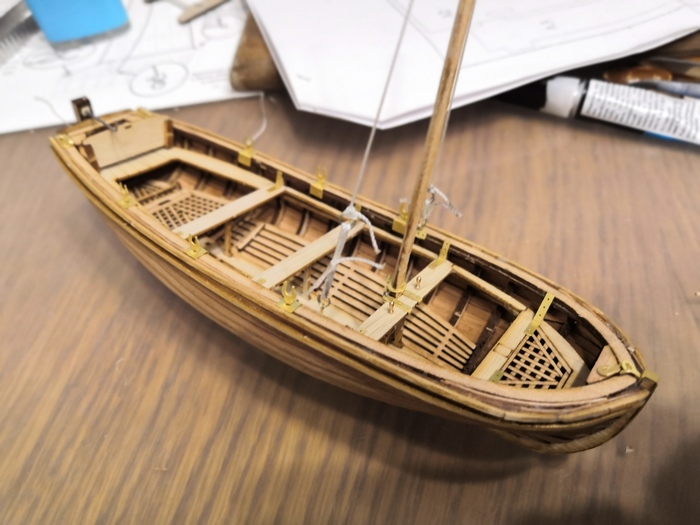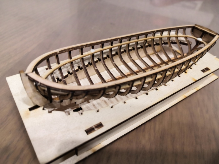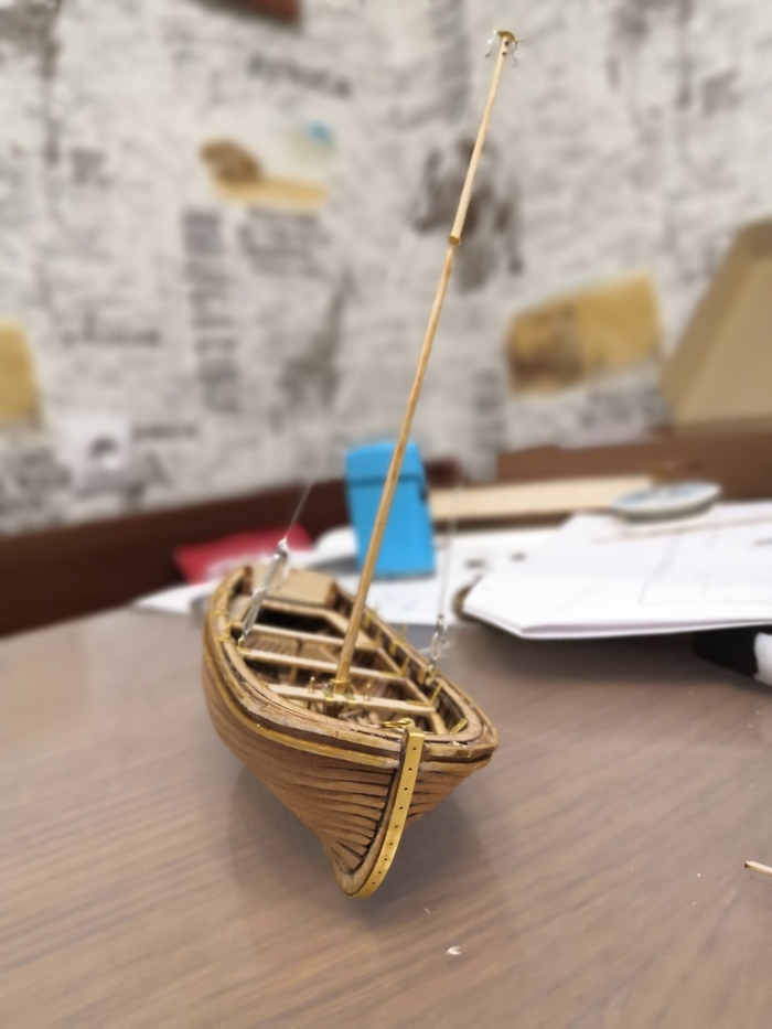 Наконец-то, сегодня, за первую половину дня, я доделал свой ял! Возможно, стоит произвести какие-то доработки, типа покрытия лаком, зашкуривания, или чего-то ещё, я пока не знаю и не понимаю. В этой части советы опытных были бы очень кстати, но все этапы, которые есть в инструкции, завершены, посему можно сказать, что корабль готов и выглядит он теперь вот так:
